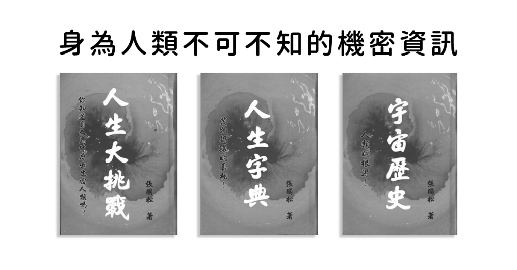 《人生大挑戰》、《人生字典》和《宇宙歷史》這三本書記載著人類一定要知道真相,尤其是身為台灣人的你,不只在台灣,中國、香港、新加坡、馬來西亞、英國、法國、美國、德國等,世界各地都有人在閱讀。